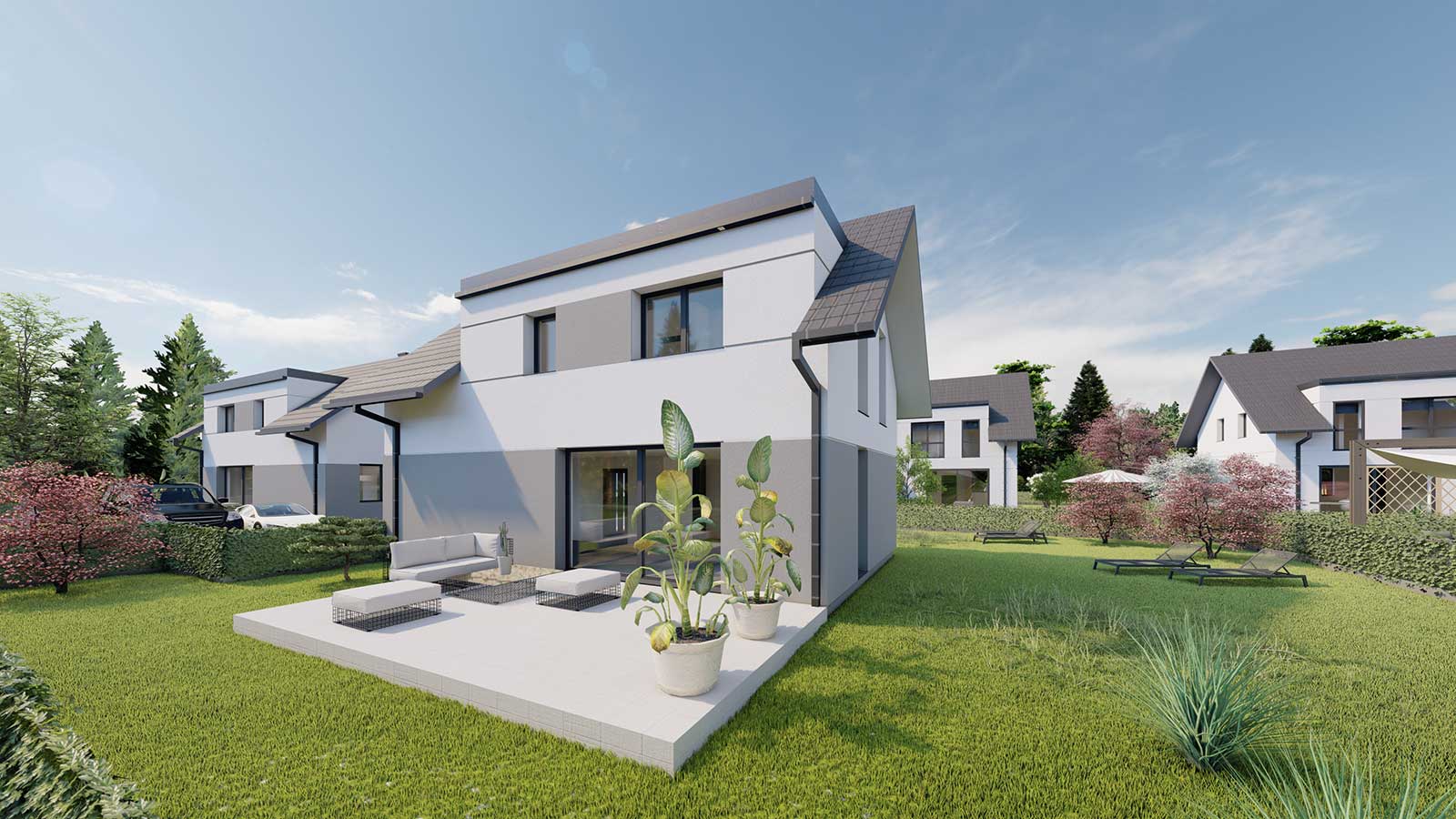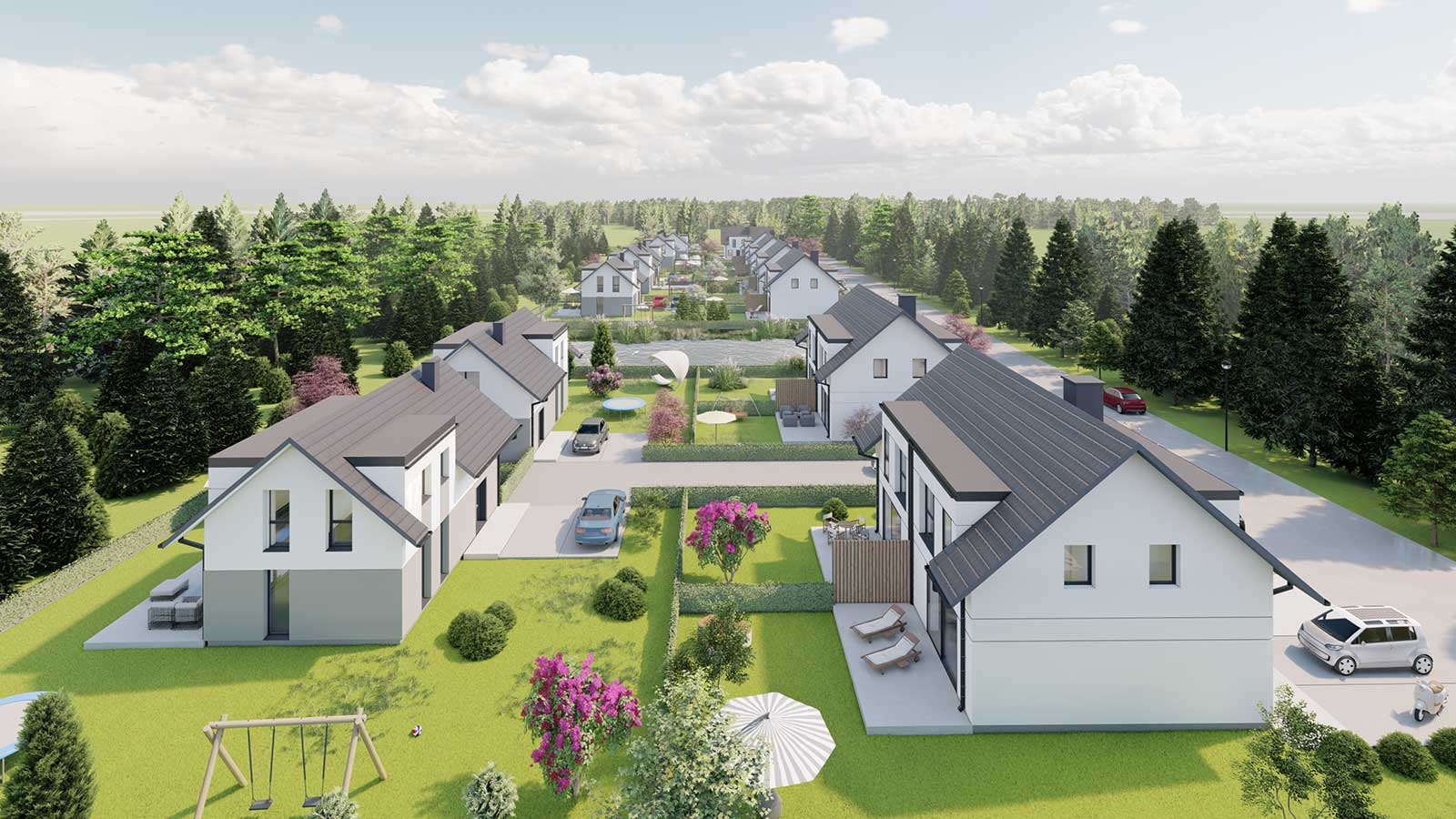 Nasze domy powstają z myślą o harmonii między estetyką, funkcjonalnością i naturą. Starannie zaprojektowana przestrzeń zapewnia prywatność, wygodę oraz poczucie bezpieczeństwa, a jednocześnie tworzy przyjazną, sąsiedzką atmosferę.